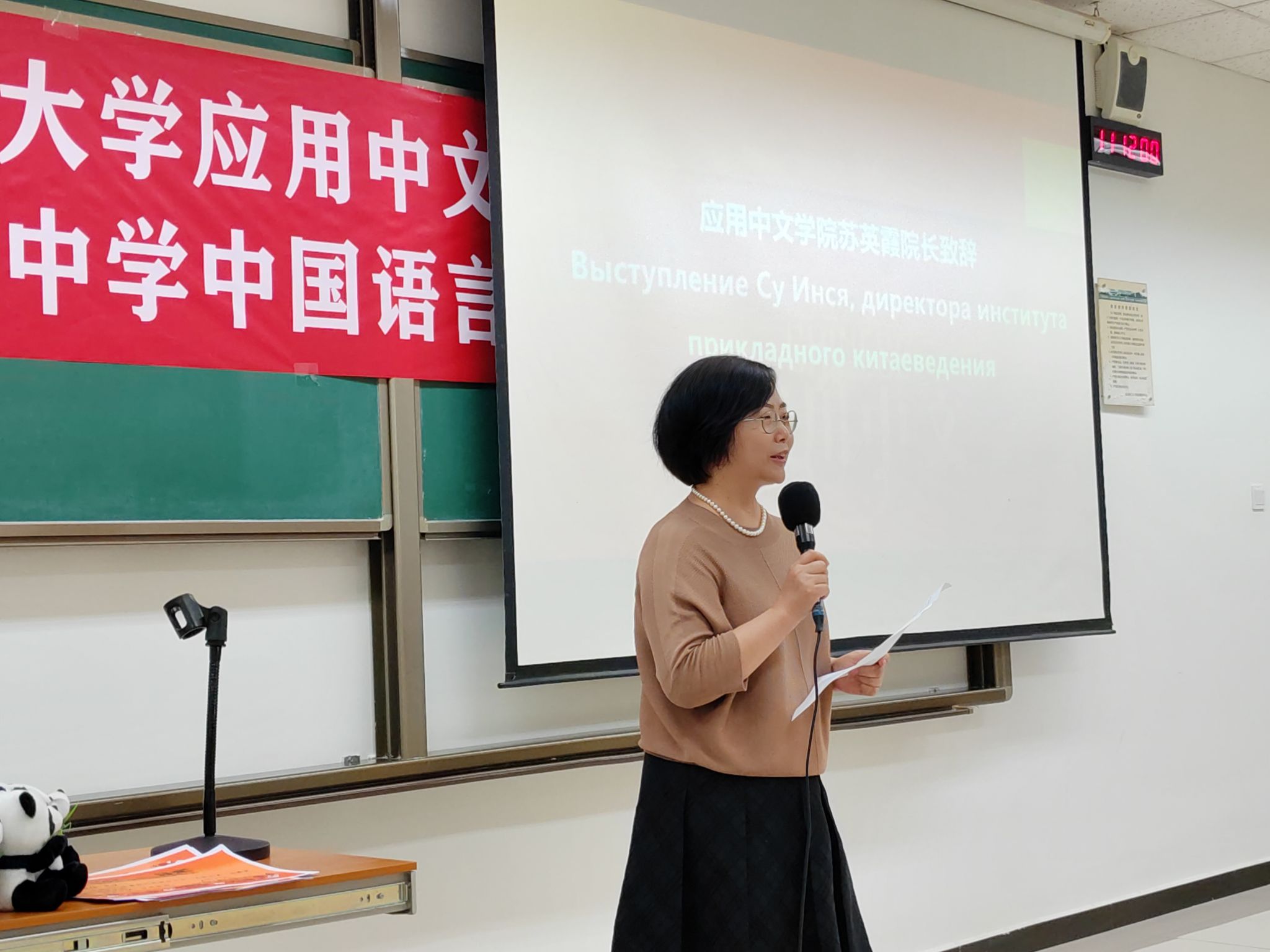 8月16日上午,应用中文学院院长苏英霞教授、莫斯科1948中学和1329中学的领队老师及80名学员、任课老师、还有项目组相关老师及志愿者参加了隆重的结业典礼。