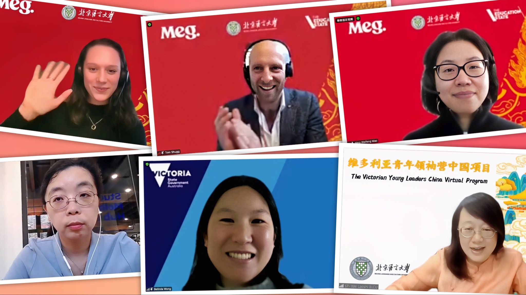 6月9日,由北京语言大学和澳大利亚维多利亚政府教育部联合主办的2023年度第一期“维州青年领袖营线上中国项目(VYLC)”圆满落下帷幕。来自7所维州中学的54名青年学子与北京语言大学应用中文学院和Meg语言中心的老师们共同完成了为期两周的线上语言文化之旅。