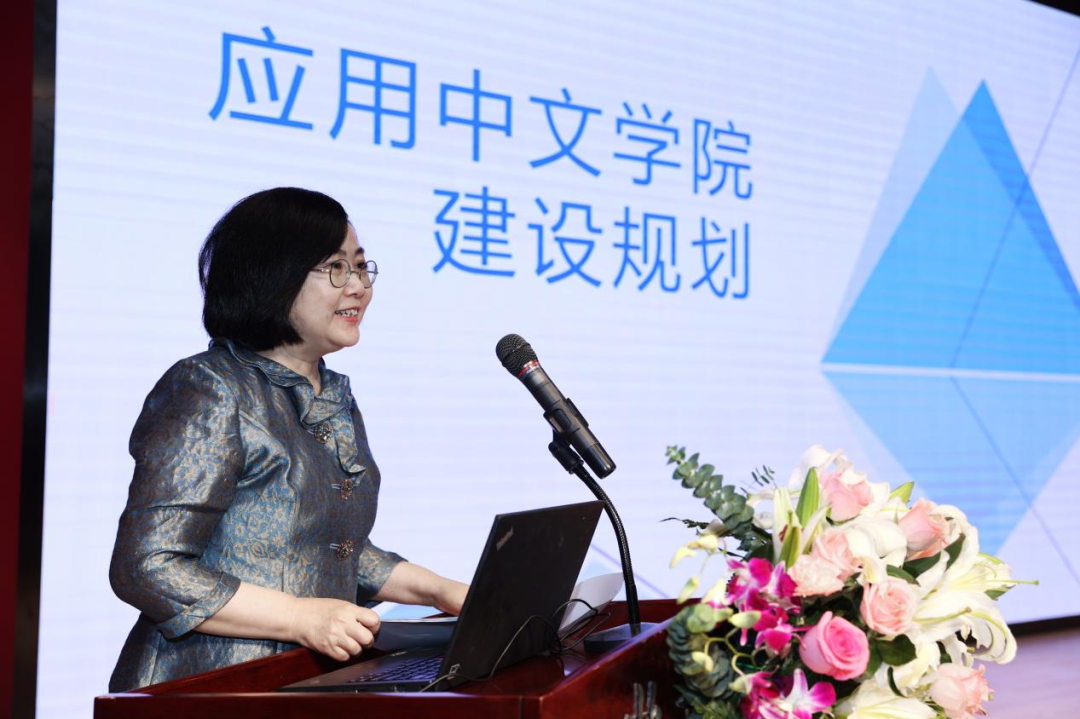 应用中文学院院长苏英霞教授对学院建设的必要性、可行性、学院定位、建设目标、主要任务等进行了系统阐述。她说,学院是实体性教学科研机构,以服务国家战略,助力各国经济发展,促进中外民心相通为办学宗旨,培养具有全球视野人文情怀,了解中国国情文化,具备中文语言交际能力和跨文化能力,具备较为完备的专业知识与技能,能熟练运用中文从事专业领域工作,服务于中外文化与经济交往和各国共享发展大局的应用型、复合型、创新型国际人才。学院建设以中文与专业职业相融通,突出应用为特色,将采取灵活开放的国际合作、校际合作、校企合作等办学模式。常规课程与定制课程,线上课程与线下课程,知识课程与实践课程相结合的开放型的课程体系,实施“中文+”融合型教育,提升中文使用价值和实用价值,增强国际中文教育和职业教育的全球适应性,扩大中国教育品牌整体国际影响力。