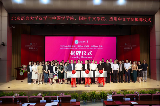 6月6日,时值芒种,北京语言大学应用中文学院、汉学与中国学学院和国际中文学院揭牌仪式在教一楼礼堂隆重举行。