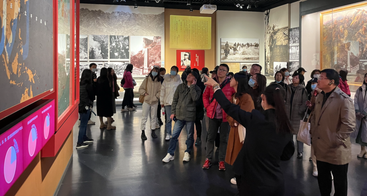 应用中文学院教职工在抗日战争纪念馆仔细聆听讲解员的介绍