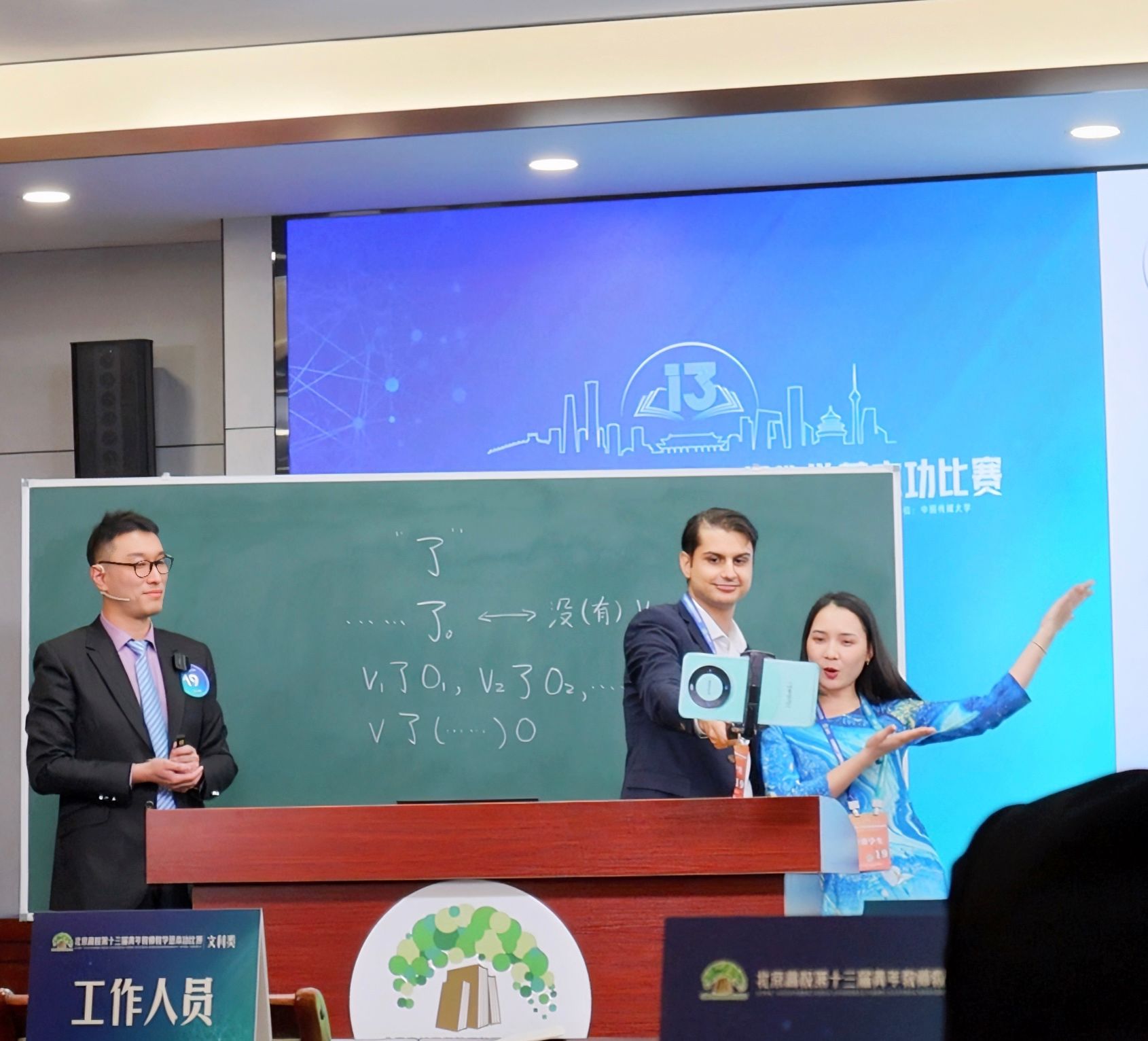在备赛过程中,指导教师苏英霞教授与蔡楠老师共同讨论课程选题与教学设计,一遍遍打磨教案,力求在20分钟的教学展示过程中,完美呈现我院经典的汉语速成教学理念和语言与国情文化相结合的教学模式。学院教学专家赵秀娟副教授和陈军副教授多次参与听课指导。作为一名青年教师,蔡老师通过备课备赛,对教学有了更深刻的认识。正如苏英霞教授所说,参加比赛,获奖固然可喜可贺,但更重要的是,青年教师可以在老教师的指导下,在深入的思考与不断的实践中获得成长。