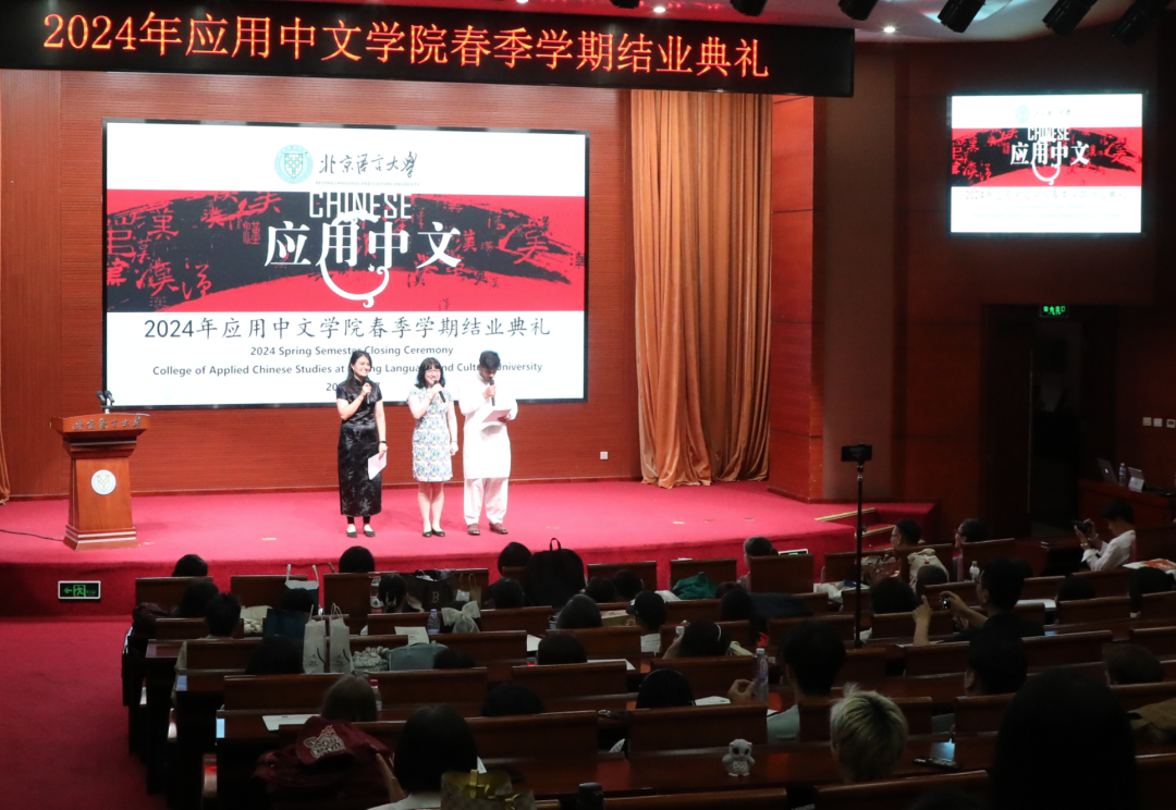 2024年6月27日,北京语言大学逸夫楼报告厅热闹非凡,这里正举行应用中文学院2024年春季学期结业典礼,来自世界各地的留学生齐聚一堂,欢庆结业,分享收获。