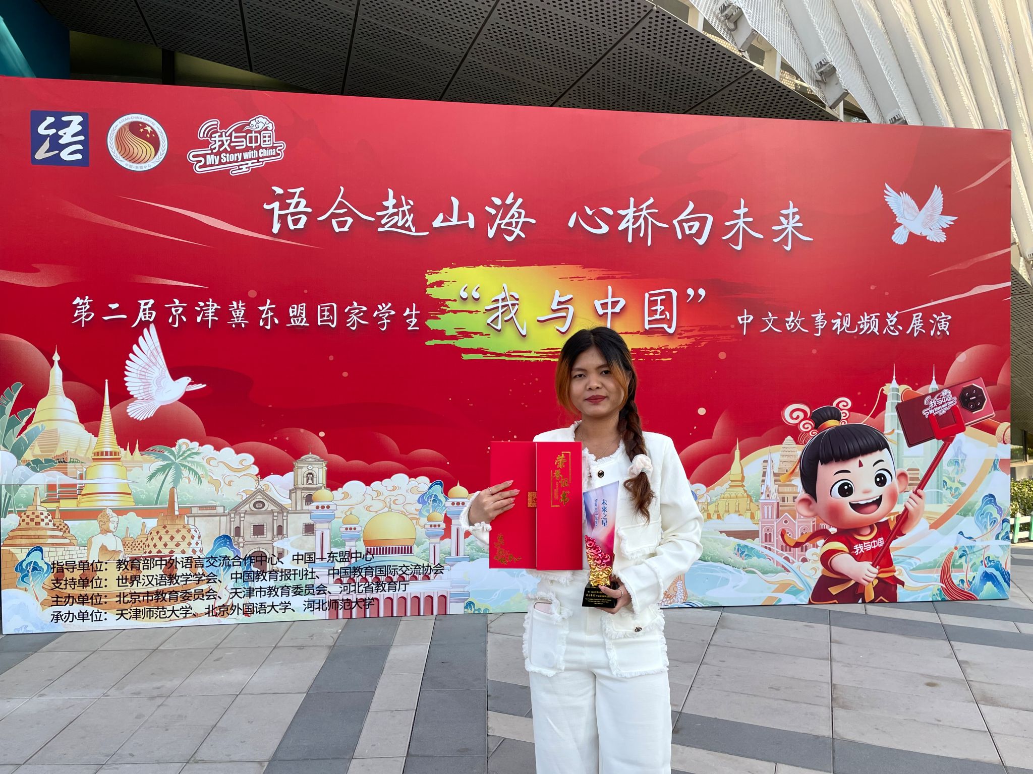 近日,在天津师范大学举办的第二届京津冀东盟国家留学生“我与中国”中文故事短视频比赛中,我校应用中文学院2024级汉语言(经贸方向)1班缅甸留学生赵欣慧凭借作品《缘起之时,心之所向》荣获“未来之星”奖。