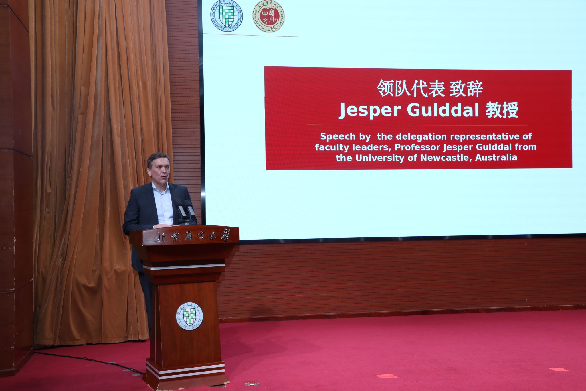 澳大利亚纽卡斯尔大学的杰斯珀·古尔达尔教授(Prof. Jesper Gulddal)作为领队代表致辞,他高度认可项目的质量和团组学习的收获,表示希望以后能有更多纽卡斯尔大学的学生参加项目,期待与北京语言大学进一步深化合作。最后,他用中文深情地说“我们喜欢中国!喜欢北京!”赢得了大家热烈的掌声。
