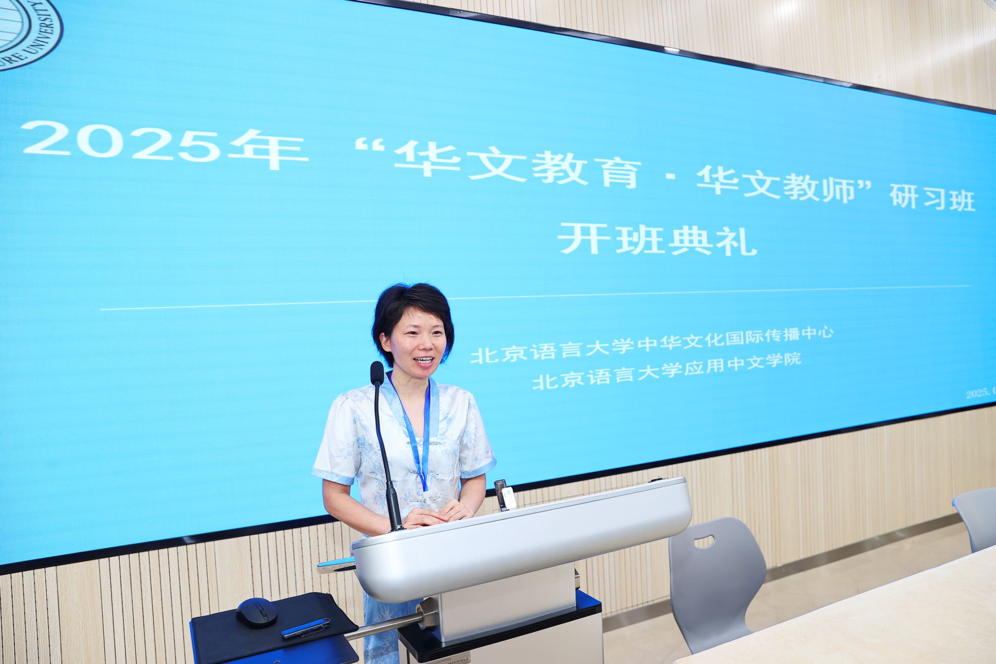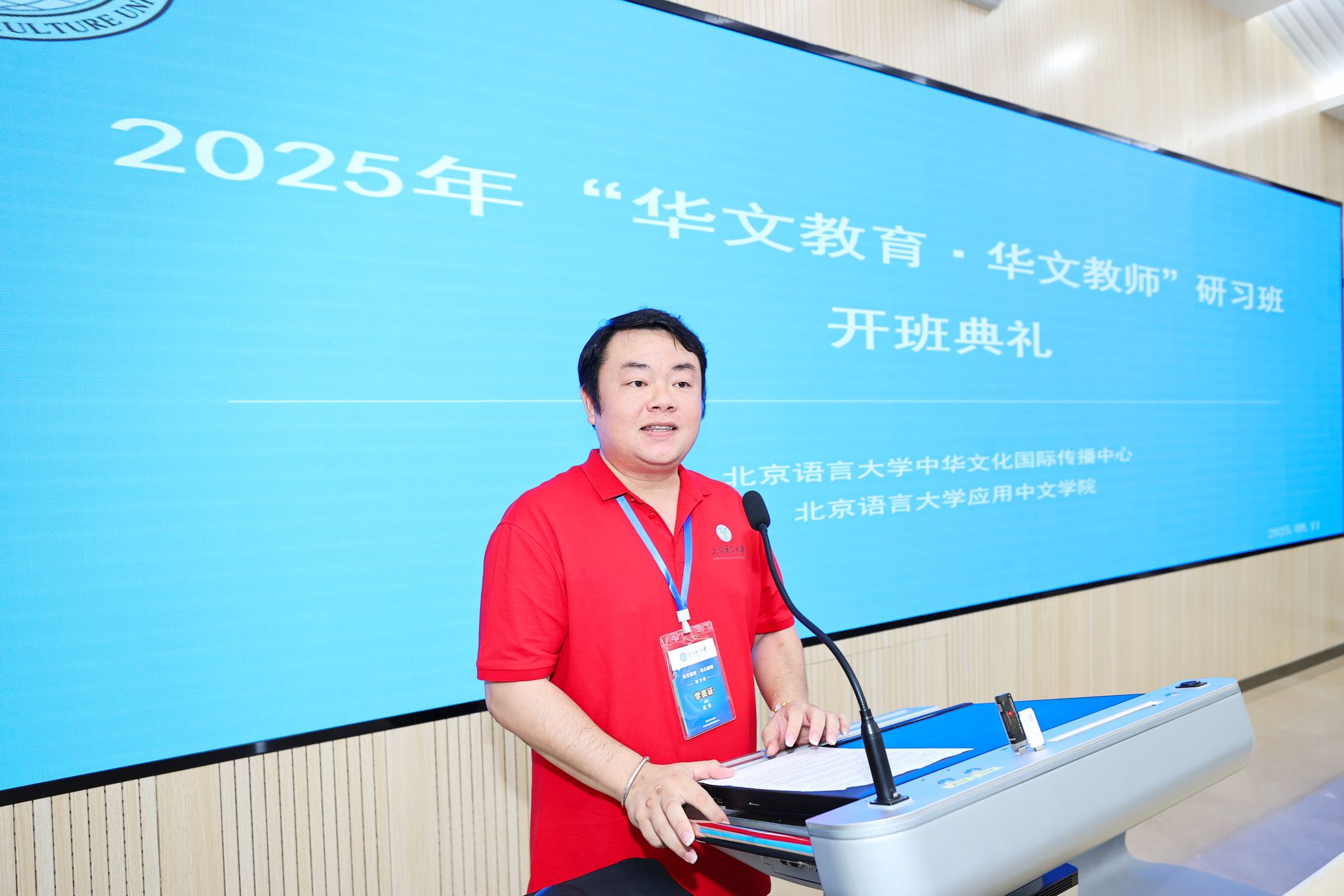 8月11日,由华文教育发展中心主办、北京语言大学承办的2025年“华文教育·华文教师”研习班隆重开班。来自美国、德国、英国、荷兰、日本、缅甸、泰国等22个国家的80名学员参加了开班仪式。北京语言大学黄益方副校长为开班致辞,北京语言大学党外知识分子联谊会常务副会长吕静主持开班仪式。北京市政府侨务办公室侨务事务处副处长李峰、应用中文学院院务委员会副主任白浩参加开班仪式。