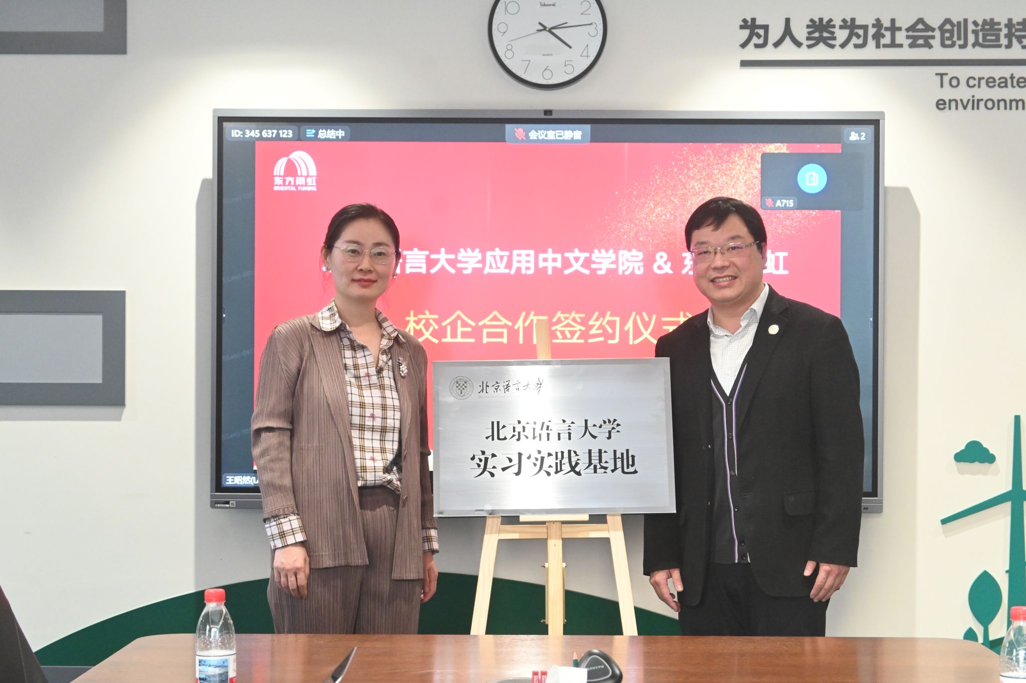 洽谈结束后,双方举行了隆重的签约授牌仪式。杨晓菲副总裁与周鑫书记共同签署了《北京语言大学实习实践基地合作协议》,并为“北京语言大学实习实践基地”牌匾揭牌。这标志着双方合作正式进入实施阶段,开启了校企合作、协同育人的新篇章。