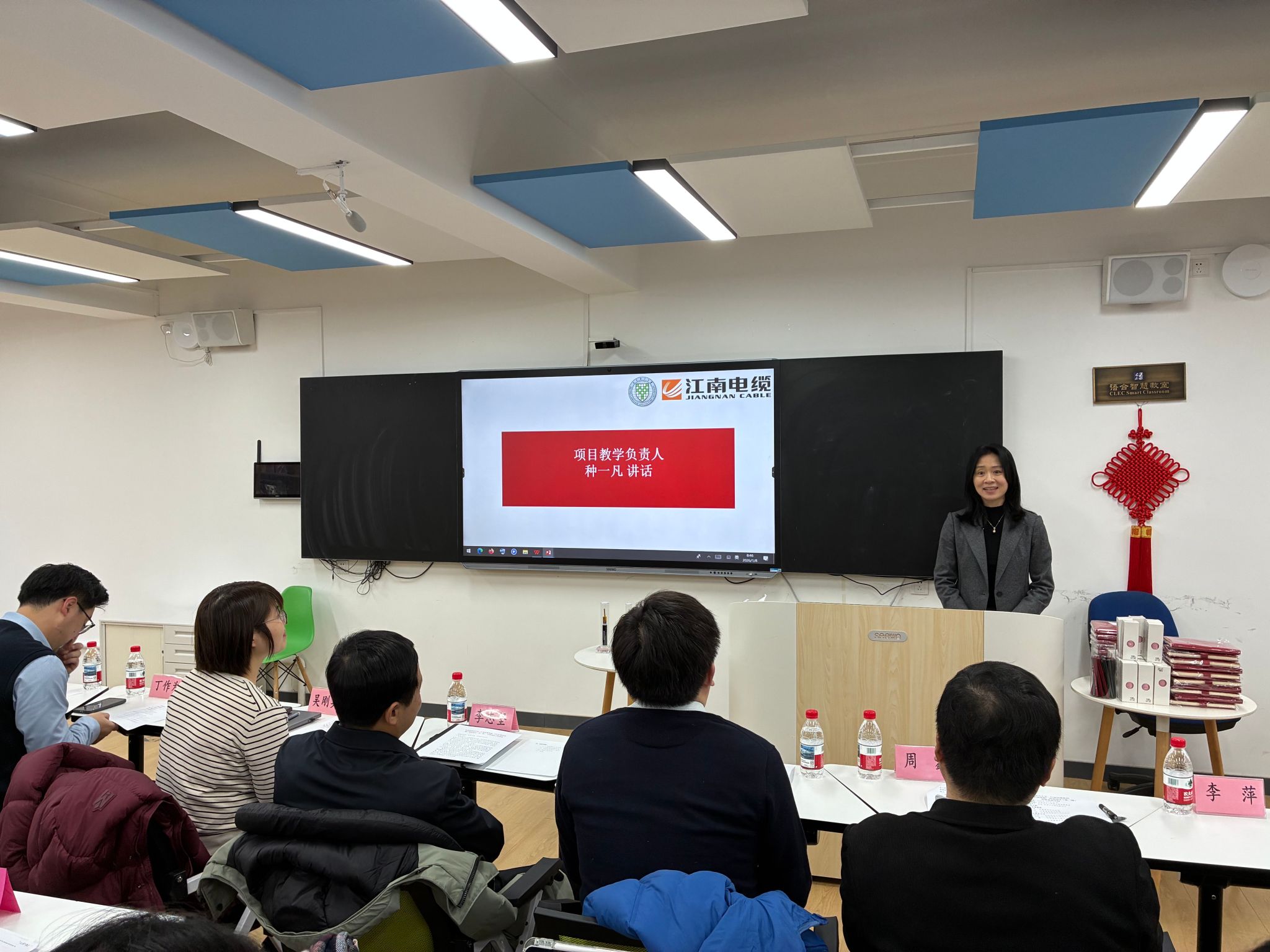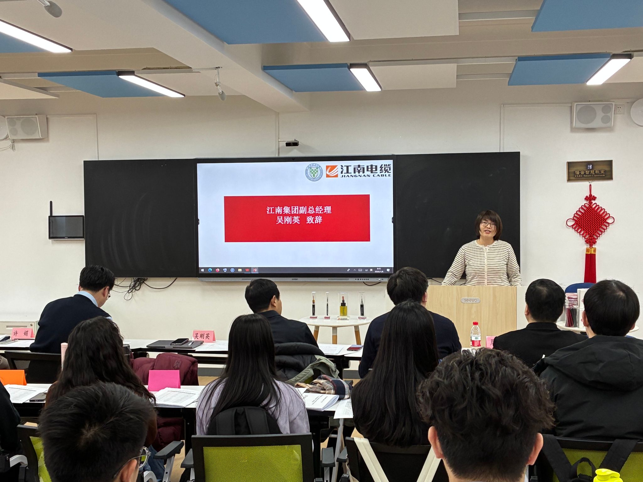 江南电缆集团副总经理吴刚英随后致辞。她感谢北京语言大学提供高质量的学习平台,并介绍了江南电缆集团的发展历程与人才战略。她表示,随着企业国际化步伐加快,企业对于国际化人才的中文应用能力与综合职业素养提升迫在眉睫,此次培训恰逢其时。集团高度重视此次合作,期待与北语建立长期稳定的合作关系。