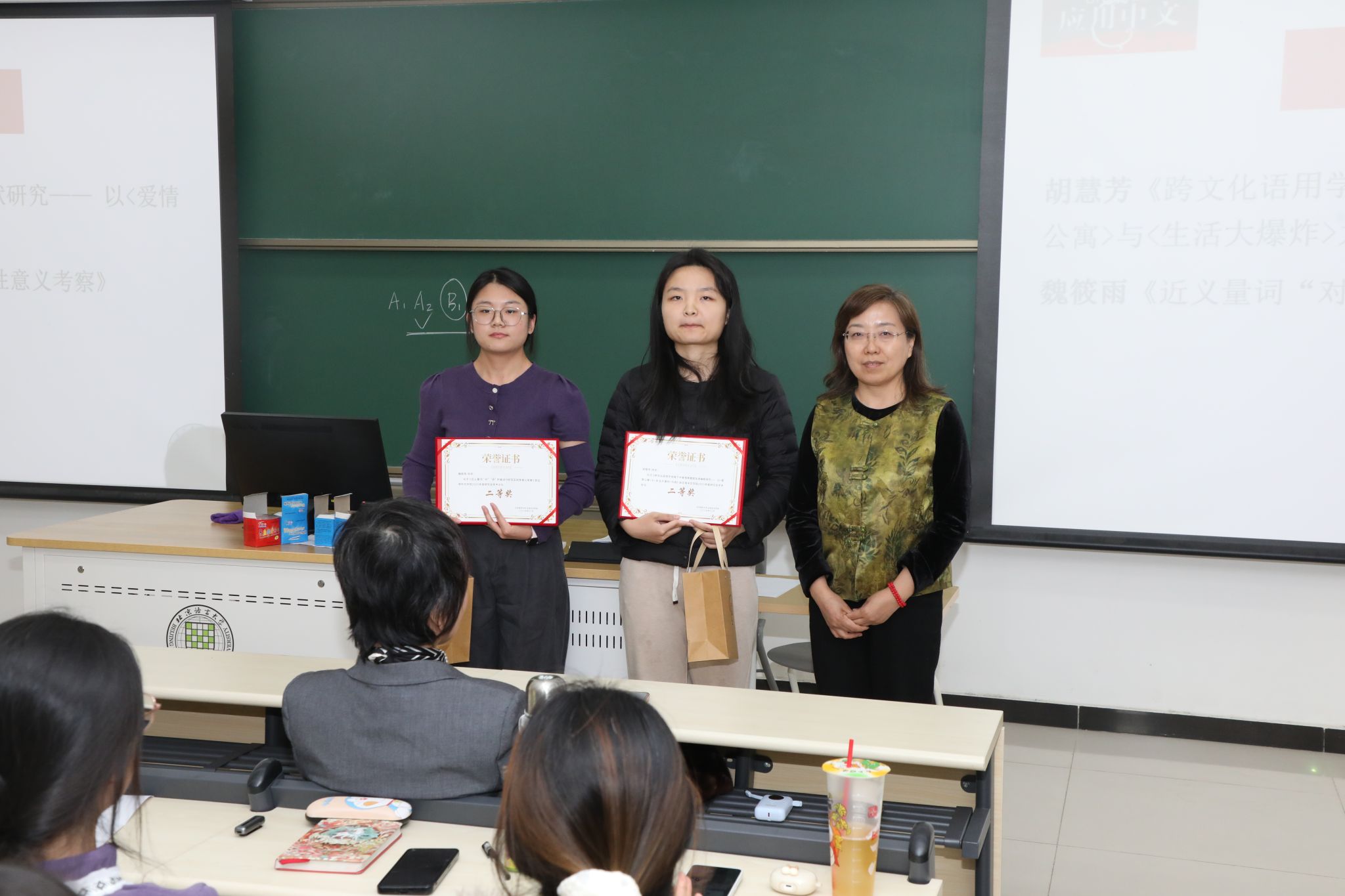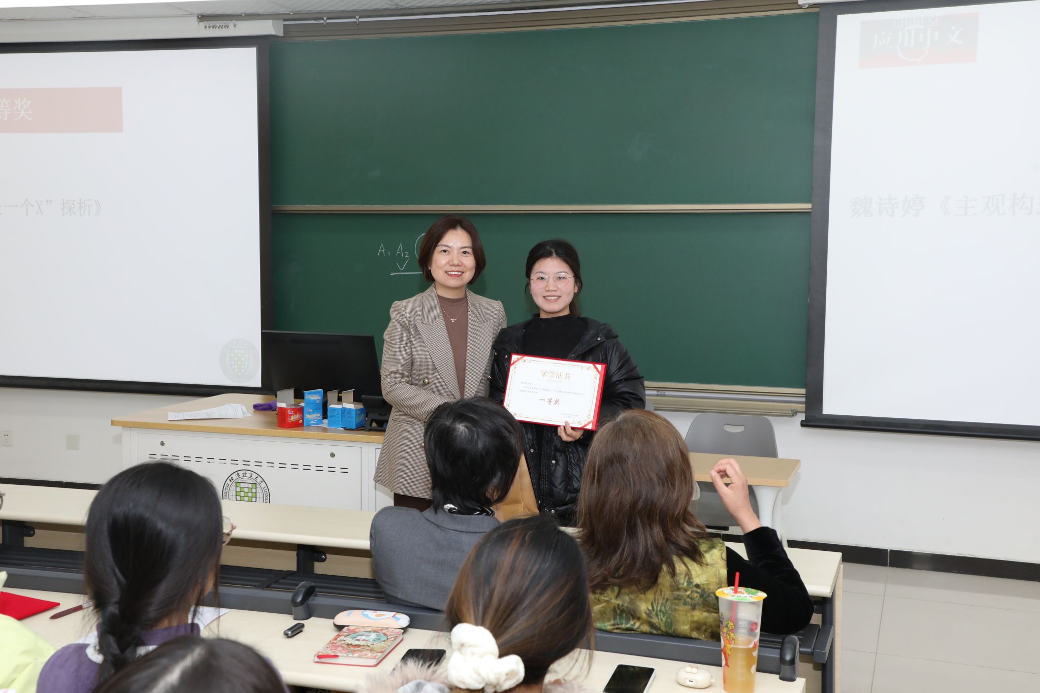 研究生培养主管领导朱文文副院长为获奖学生颁奖