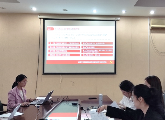 6月7日,应用中文学院的研究生党员们在教三楼124聚集一堂,参加了一场由党支部书记张菊萍主讲的专题党课。这次党课不仅面向全体党员学生,还吸引了部分入党积极分子、优秀团员积极参与。
