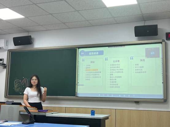 随后,王姿同学从公务员招聘信息的获取、岗位选择技巧以及备考计划等方面进行了详尽的介绍。她以自己的亲身经历为例,鼓励同学们多参与各类考试,这不仅能够将所学知识付诸实践,还能帮助大家在面对笔试和面试时保持稳定的心态。