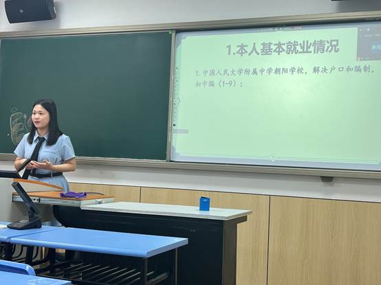 袁中慧同学则聚焦于教育行业,特别是针对希望在北京担任中小学教师的同学,她分享了求职路径及简历制作的关键点,并反复强调实习经验对于提升竞争力的重要性。