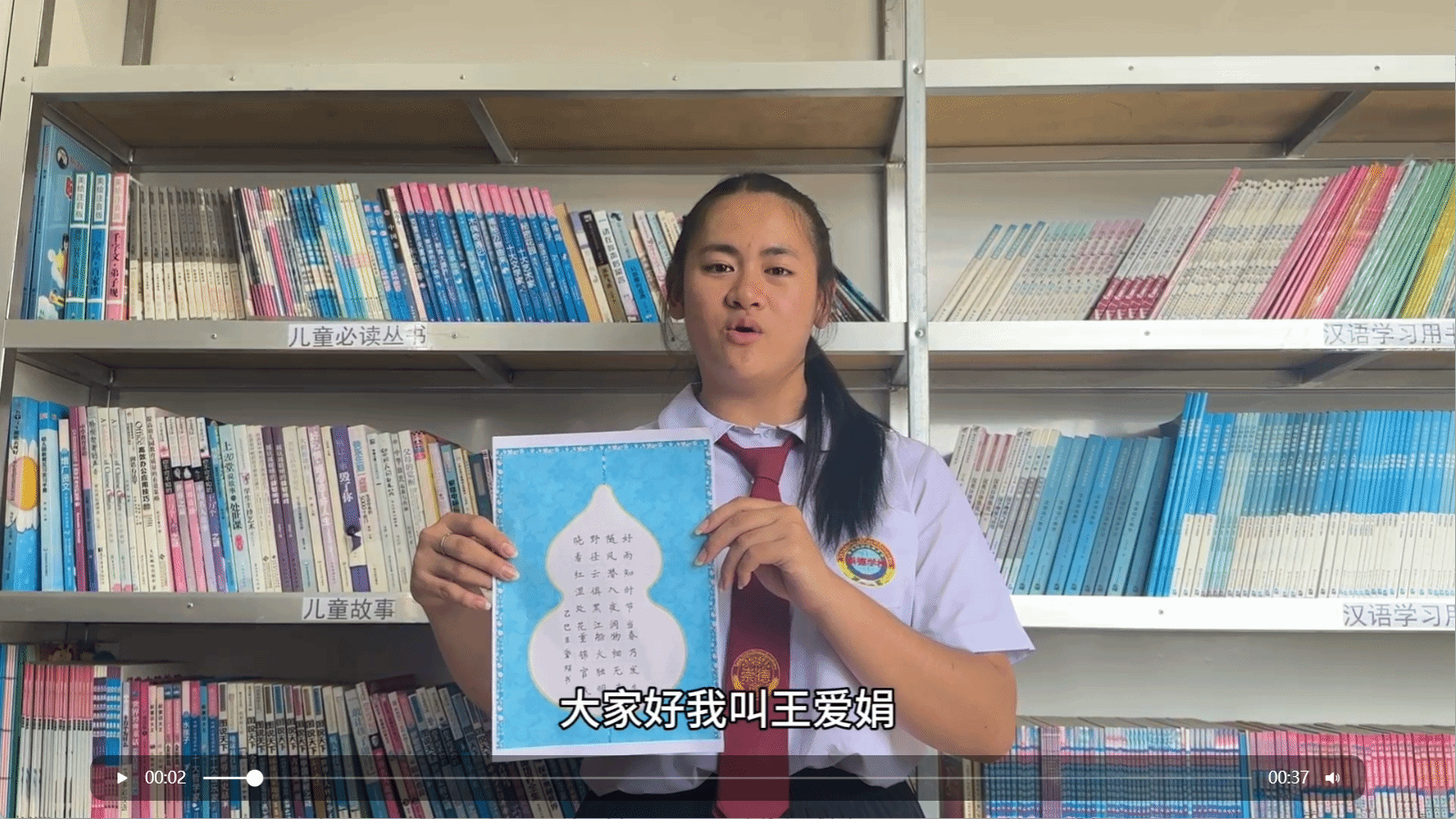 课堂是我播撒汉语种子的第一方天地,也是文化交流的肥沃土壤。站在讲台上,望着学生们好奇又认真的眼神,我深知文化的桥梁正从这里悄然搭建。在综合课上,学生们为了完成一项又一项交际活动而围着课件热烈讨论,汉语成为他们沟通思想、交流合作的工具,而这些活动背后所蕴含的中国文化的智慧与魅力,也在不知不觉中渗透进他们的心田;书法课上,王爱娟同学一笔一划临摹古诗,娟秀字迹里满是对汉字文化的敬畏与热爱,汉字的横竖撇捺间,传递着中华文化的独特韵味,学生们通过书写,感受着汉字背后深厚的文化底蕴;绘画活动中,曾美怡同学用黑色的铅笔和白色的纸,勾勒出中老两国五彩斑斓的未来,绘画成为文化交流的生动表达,学生们用画笔描绘出他们对中老友谊的憧憬与向往;诗歌朗诵时,孩子们虽然仍不太懂得“红日初升,其道大光”,可他们却在中老两国友好关系的快速发展中渐渐明白了“故今日之责任,不在他人,而全在我少年”,汉语诗歌的韵律之美与精神内涵,在他们的诵读声中得以传承与弘扬。