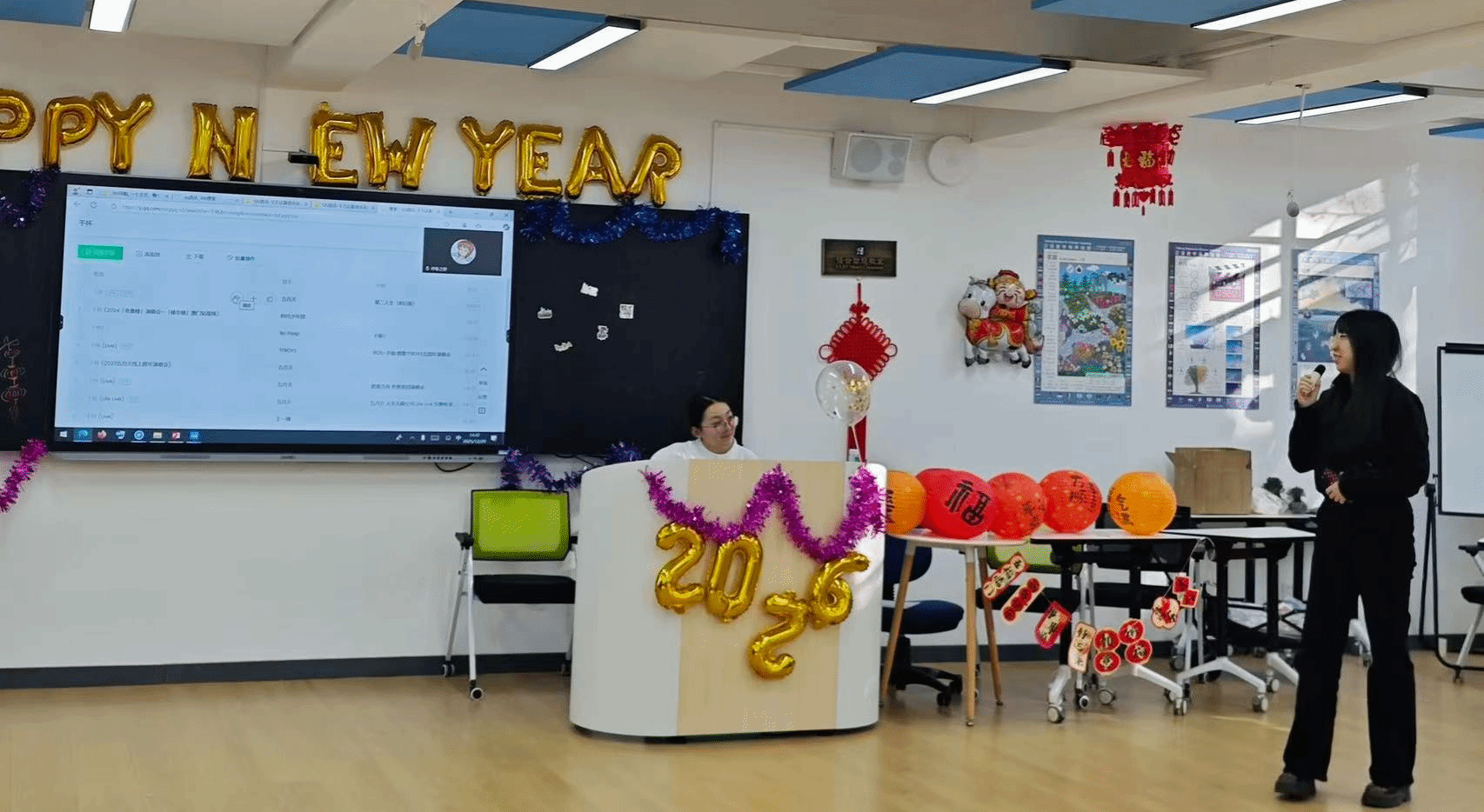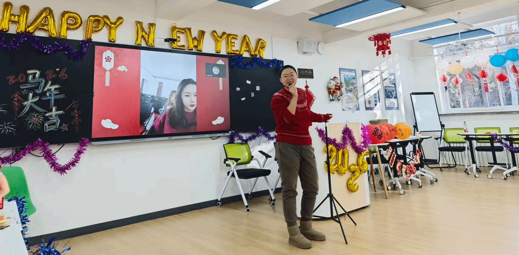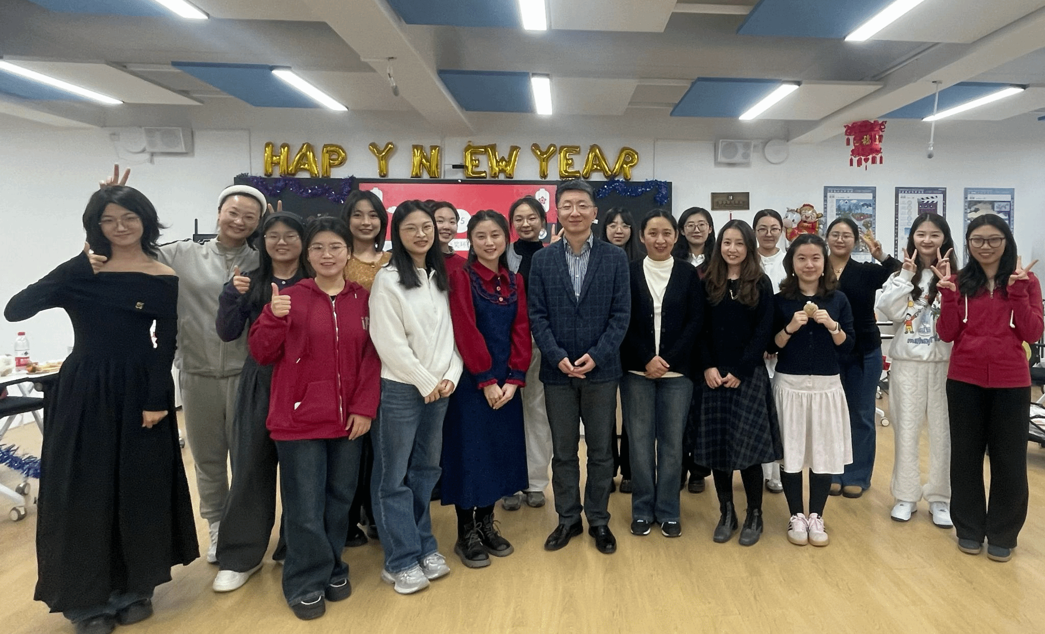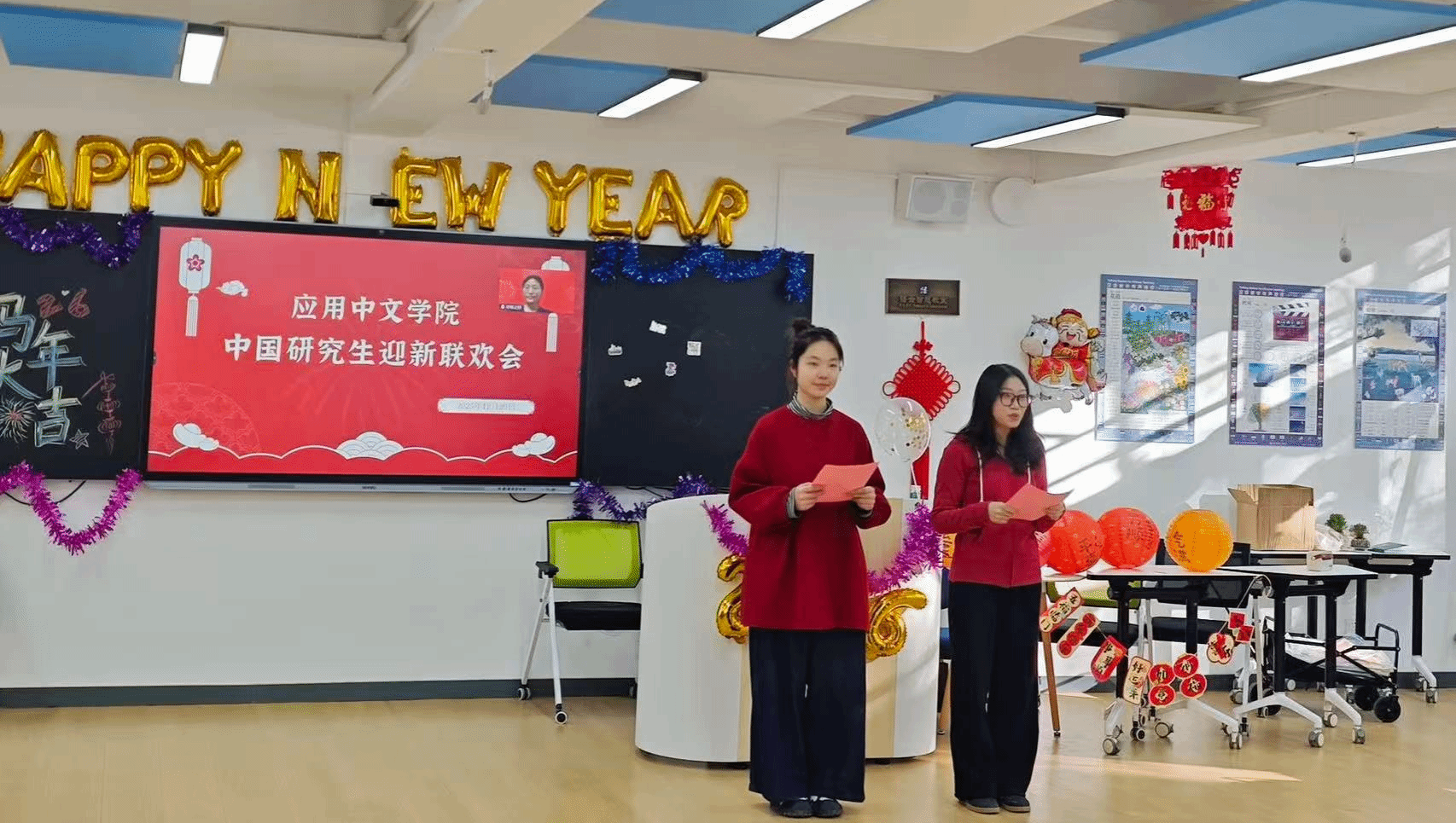 12月29日,应用中文学院在教五楼智慧教室举办研究生元旦联欢会,学院领导与在校研究生现场参加,海外学生线上参与。