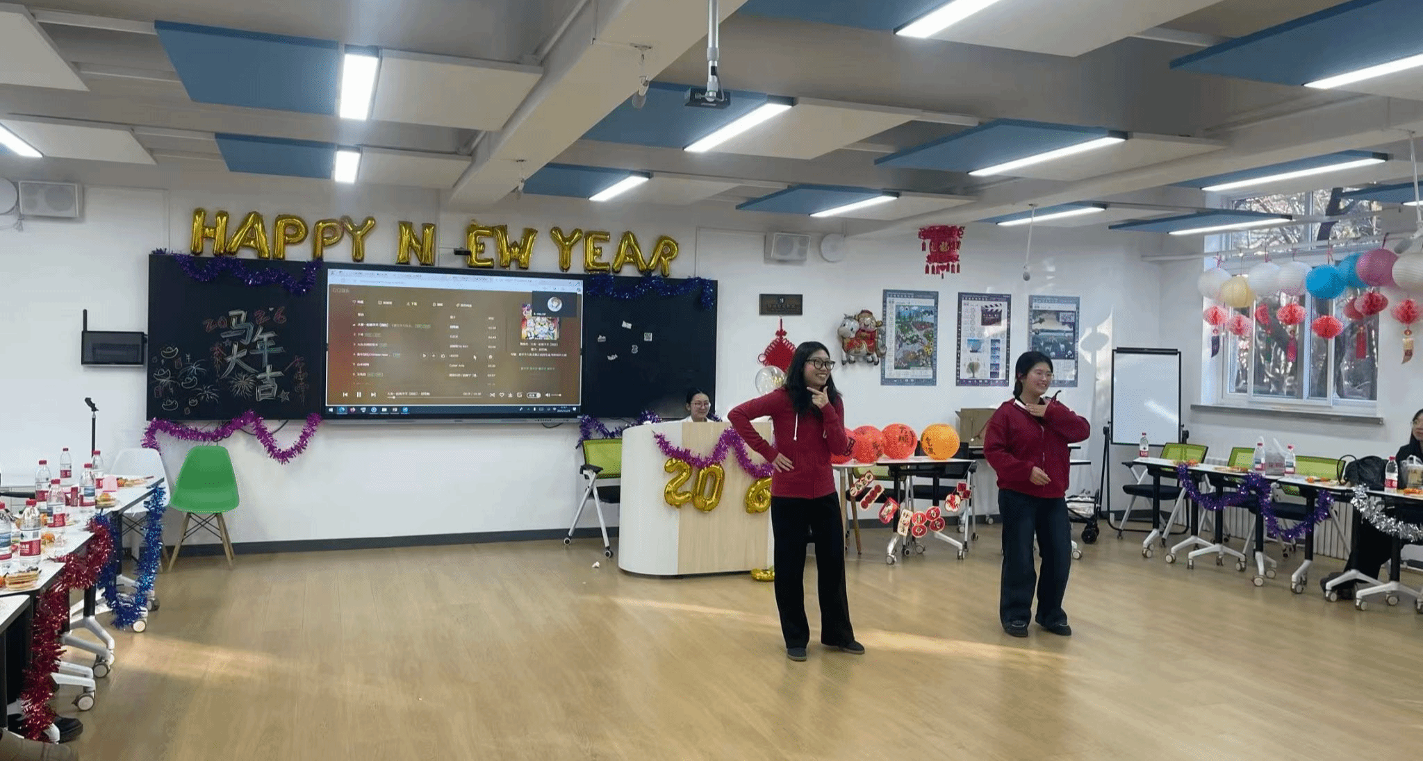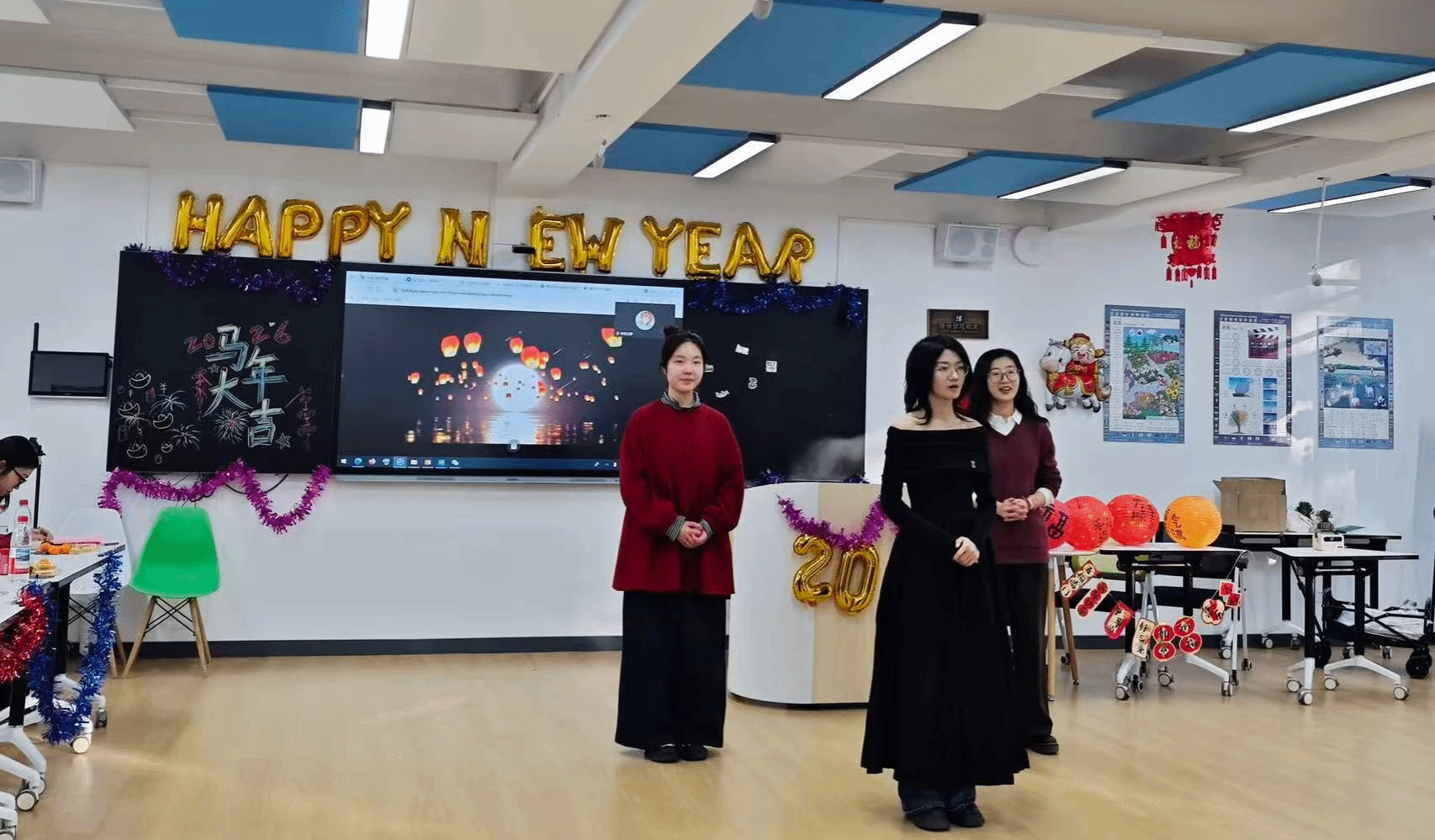 海外任教学长学姐通过视频分享经历并送上祝福,让在场师生感受到跨越时差的学院情谊。