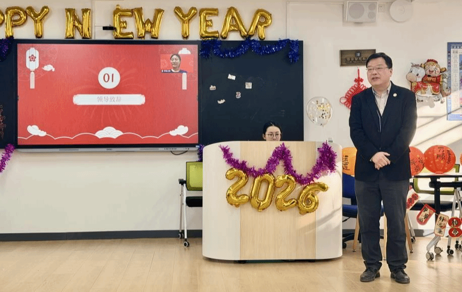 学院党委书记周鑫在致辞中肯定了学院年度发展成果,向海外学生表达节日问候,并勉励学子以中文为桥传承文化。朱文文老师也向同学们致以新年祝愿。