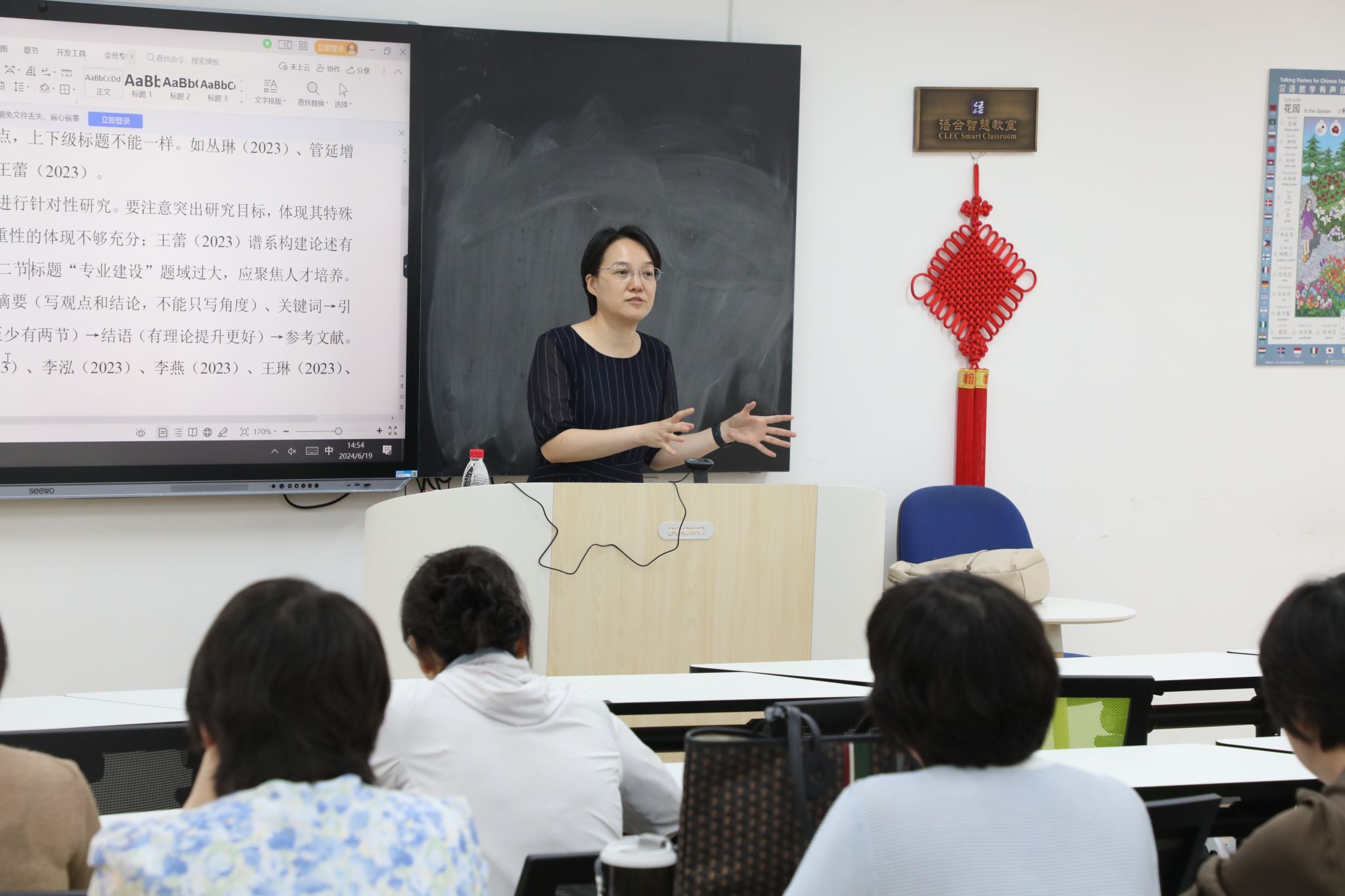 2024年6月19日下午,应用中文学院在教五楼智慧教室举办了春季学期科研沙龙。本次沙龙特邀《世界汉语教学》编辑部孟凯研究员作为主讲人,对学院2023年度科研报告会一、二等奖论文进行评析。沙龙由应用中文学院副院长朱文文主持,近二十位老师参加了此次活动。