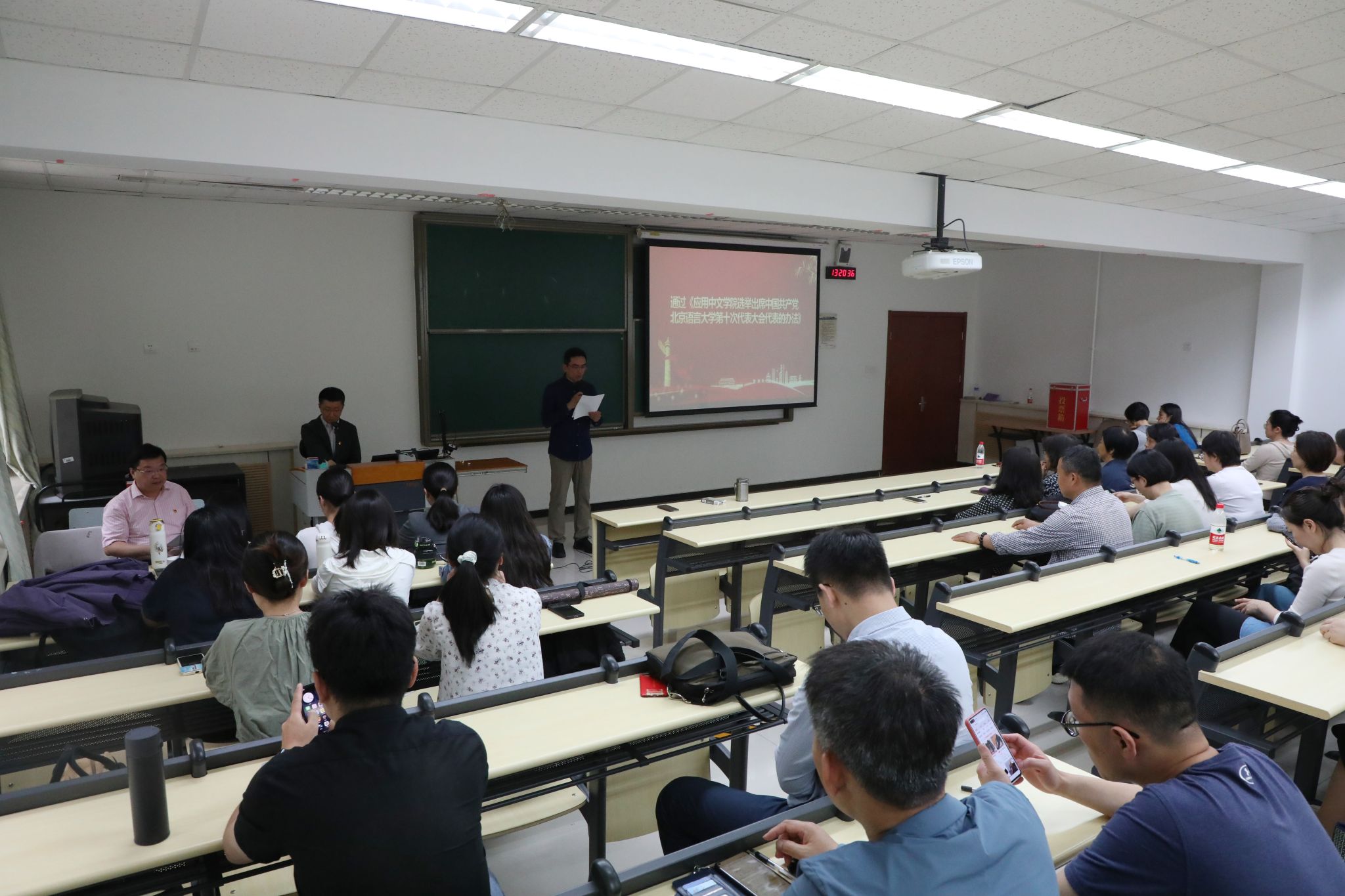 按照学校党委印发的《中共北京语言大学第十次代表大会代表选举工作方案》的要求,应用中文学院于5月10日召开了选举出席中国共产党北京语言大学第十次代表大会代表党员大会。此次大会旨在选出具有代表性、责任感和使命感的优秀党员,为学校第十次党代会的顺利召开提供坚实基础。大会由学院书记周鑫主持,全体党员出席。